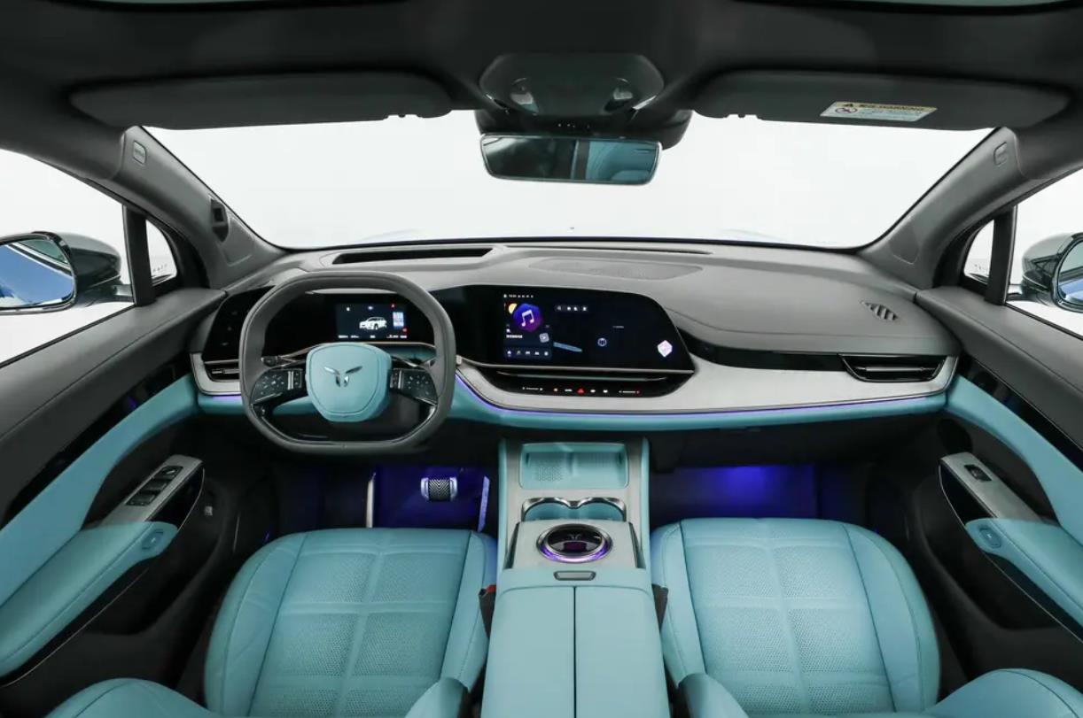内饰也用到双联屏,但设计上有点不一样的风格,我觉得有种科技感很足的布局。只是方向盘也让很多人调侃,但实际体验很棒,配合它的转向比,实际上开起来很有手感的。那它的智能上也带有L2领航功能,像氛围灯、无线充、手机接口、高通骁龙8155芯片都有,车机的流畅和可玩性都挺高的。包括它的一个座椅的填充很足,单电机、双电机之间怎么选择,但我觉得家用选择单电机就好,反正也有344马力、都有快充模式,而且这台车动力也能媲美油车2.0T,619马力的双电机那就猛很多了。